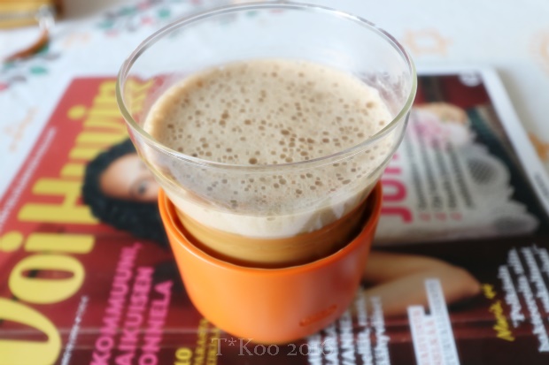 En pidä mustasta kahvista, vaan nautin kahvini mieluiten kuuman, vaahdotetun maidon kera. Musta kahvi menee vain, jos sinne on pilkottu leipäjuustoa ja se on nokipannukahvia. Teen maitovaahdon aina punaisesta maidosta. Töissä saatan joskus sortua automaatti- tai suodatinkahviin ja joka kerta muistan, miksi niitä ei pitäisi käyttää.