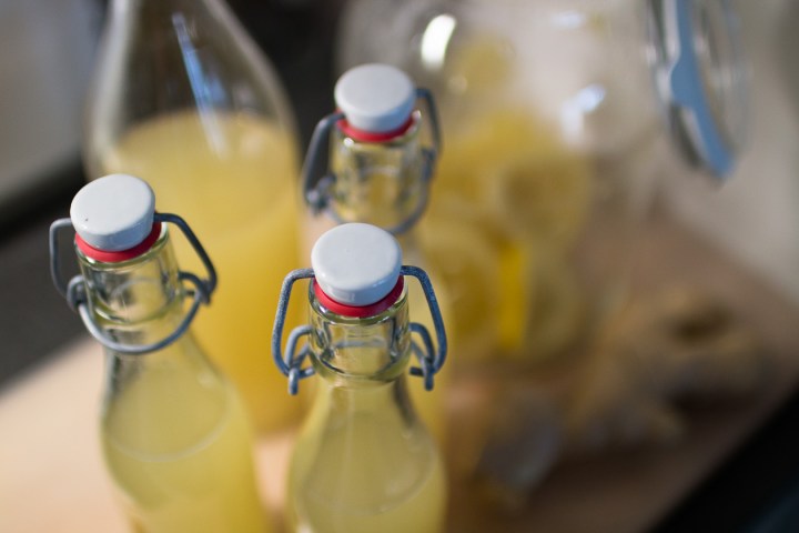 Anna käydä huoneen lämmössä muutama vuorokausi ja pullota. Voit sekoittaa valmistumassa olevaa juomaa varovasti, sillä hiiva tuppaa sakkautumaan pohjalle. Samalla kannattaa kuulostella missä vaiheessa käyminen on, jotta painetta ei kerry liikaa astiaan.