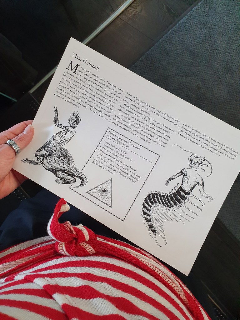 Tarjolla olisi ollut mahdollisuus ottaa erä LARP:a, mutta jätimme sen väliin. Peli ja näyttely vie maailmanlopun jälkeiseen aikaan, jonka tematiikka sai kyllä oikeasti ainakin minut pysähtymään. Jos roolipelaaminen kiinnostaa, kannattaa ehdottomasti tutustua tähän näyttelyyn!