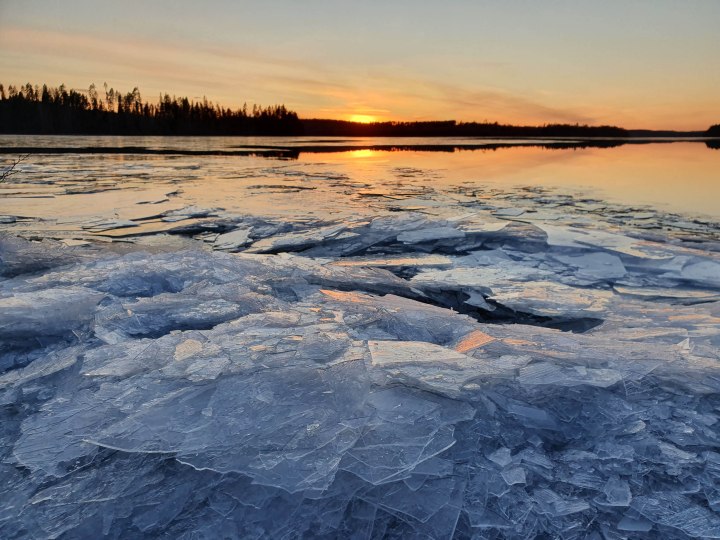 Kalmusaaressa oli tarjolla puita, siisti kompostoiva vessa ja tuletkin valmiina. Nautimme eväät hyvillä mielin auringon laskiessa, kevyen jääpeitteen napsuessa ja humistessa taustalla.