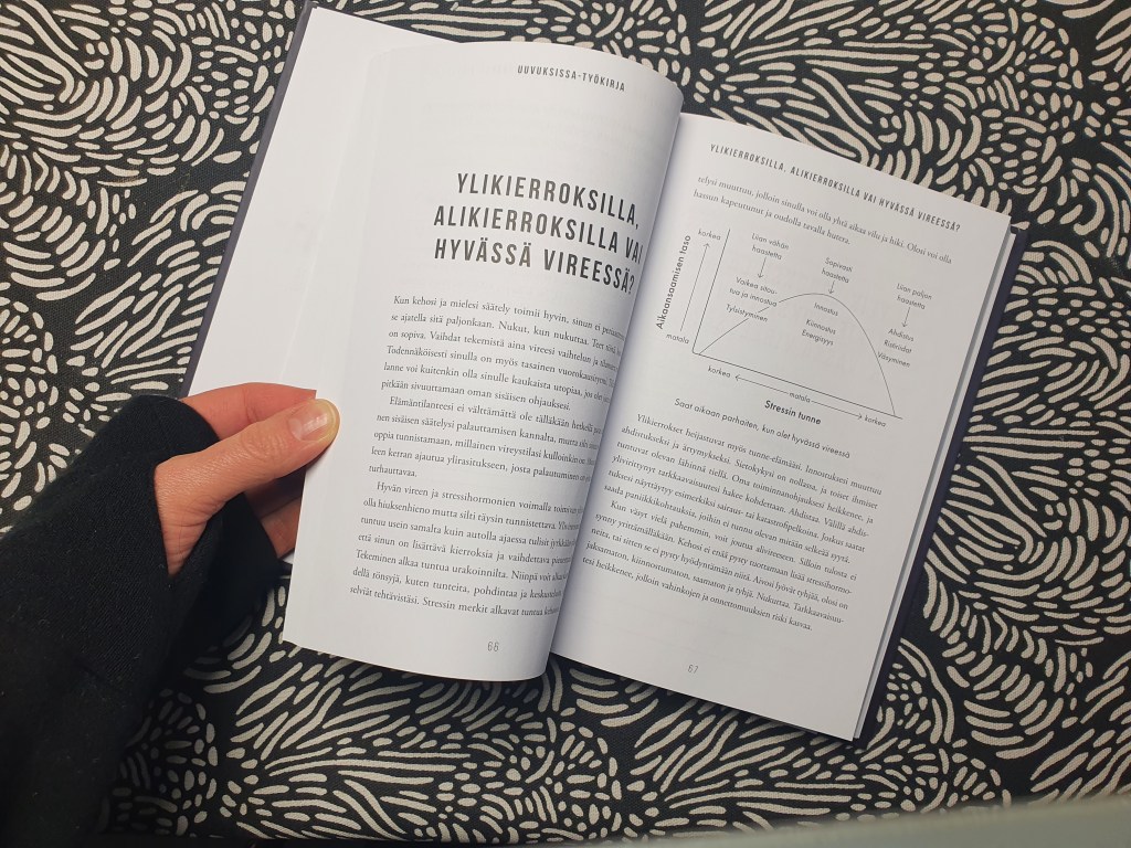 Tällä lauseella alkaa työkalu, jonka avulla työstän pitkäaikaista uupumustani ja ajoittain hukkumaan taipuvaisia stressinhallinnan taitojani. Kyseessä on siis Liisa Uusiatalo-Arolan uusi Uuvuksissa -työkirja, joka on jatkoa 2019 julkaistulle Uuvuksissa -kirjalle. Muistatko, kun kirjoitin toissa keväänä kirjasta otsikolla Uuvuksissa – kirja sinulle, joka tahdot voimasi takaisin?