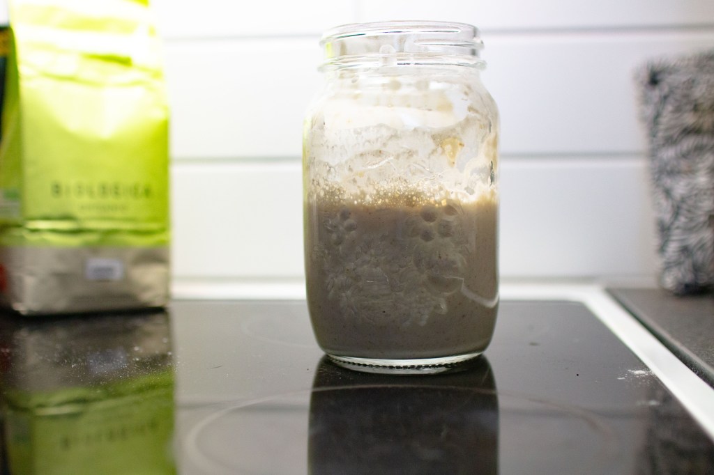 Juuri on valmis. Sitä tarvitaan noin 320 g kahden leivän taikinaan. Tässä vaiheessa juuren voi myös siirtää jääkaappiin odottamaan seuraavaa leivontakertaa. Kun otat juuren jääkaapista, anna sen seistä vuorokausi ja aloita 4. päivän ohjeen mukaisesti juuren ruokkiminen.