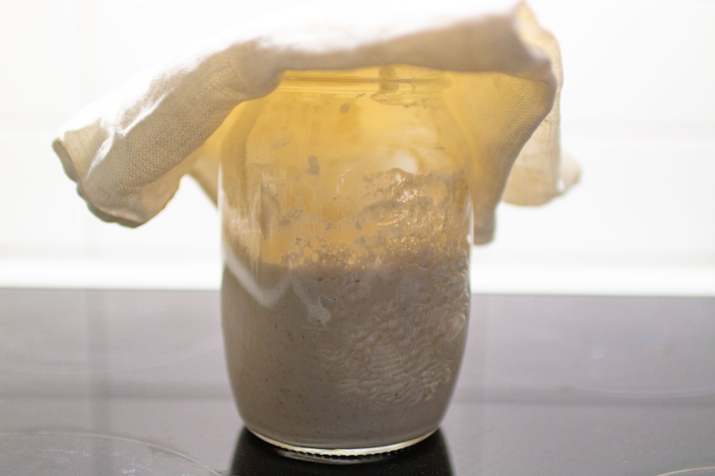 Huom! Purkki pitää peittää kevyesti, jotta sinne ei pääse vääriä homeitiöitä tai bakteereja, mutta purkin kantta ei saa kiertää tiukasti kiinni.